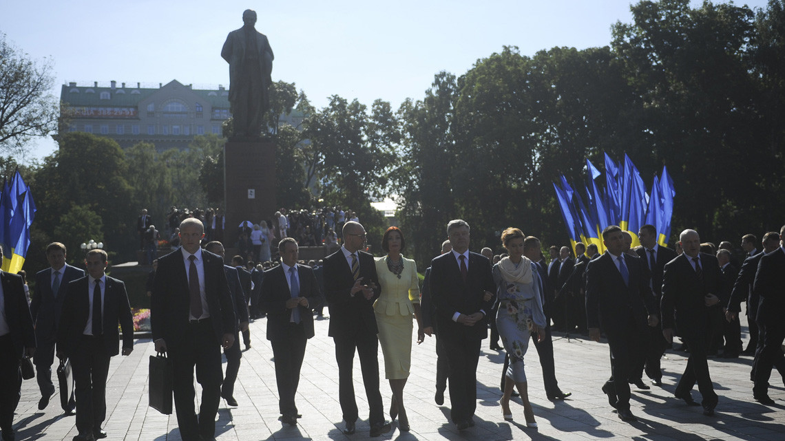 В урочистостях взяли участь президент України Петро Порошенко, прем’єр-міністр Арсеній Яценюк, члени уряду, інші високопосадовці, колишні президенти України Леонід Кравчук, Леонід Кучма, Віктор Ющенко.