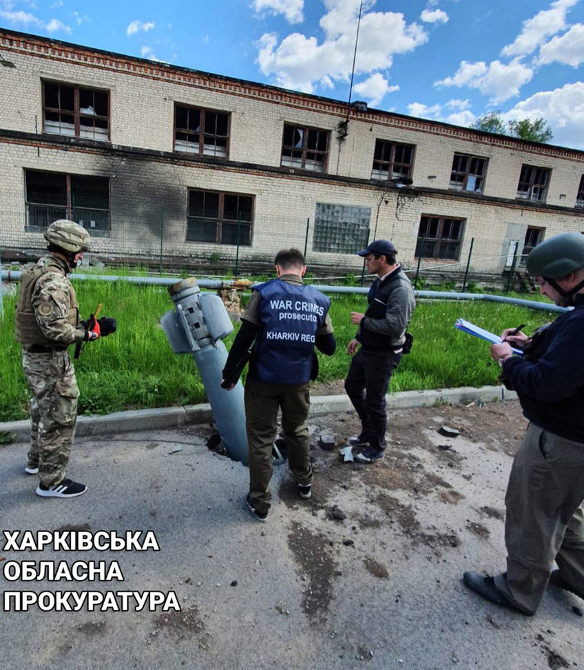 Харківські прокурори фіксують влучання ракети, ХФТІ. Фото: прокуратура