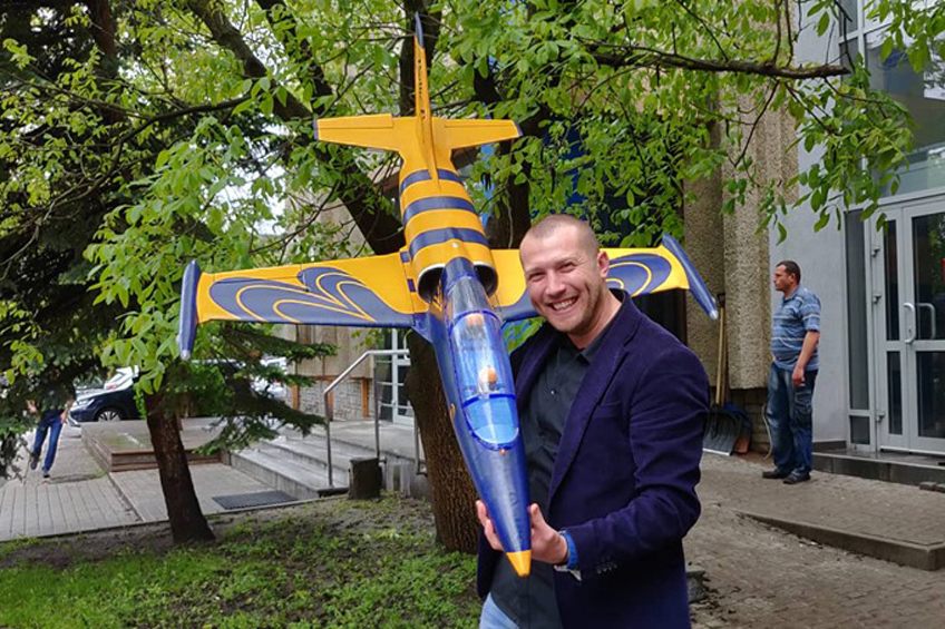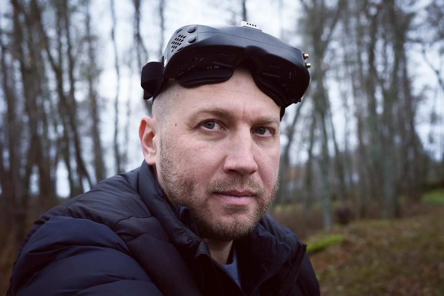 Олександр Грачов зі своїми FPV-окулярами у Фінляндії. Фото із Фейсбуку Грачова